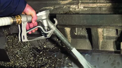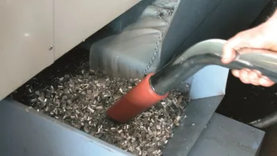 Met de speciale oliebestendige afvoerset wordt het reservoir geleegd. Het pistool is met een hendel te bedienen waardoor de gebruiker nauwkeurig kan doseren. Het retourneren van de gefilterde vloeistoffen kan tegelijk met het opzuigen van de spanen gebeuren. Dat scheelt dus tijd.