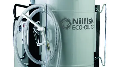 Met de Nilfisk Eco-oil 13 is het mogelijk om koelvloeistoffen of olie op te zuigen en vervolgens te hergebruiken. Door middel van een filter worden alle metaalspanen eruit gefilterd. De vloeistoffen worden vervolgens weer teruggebracht doormiddel van een aparte slang. Het Nilfisk model Eco-oil 13 met een respectievelijke 1.300 W éénfase motor, is speciaal ontworpen om olie, viscose vloeistoffen en spanen op te zuigen.