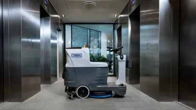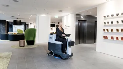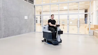 De uitermate compacte en zeer wendbare Nilfisk SC 2000 vereenvoudigt de reinigingswerkzaamheden aanzienlijk. De schrobzuigmachine heeft een krachtige aandrijving op de achterwielen wat zorgt voor comfortabel rijgedrag. Het schrobdek en de zuigvoet worden automatisch met elektrische actuators bediend. Dankzij de volledig elektronische bediening en het lage energieverbruik werken de batterijen 3,5 uur op één lading. De watertank heeft een inhoud van 70 liter waarmee de bestuurder een grote oppervlakte reinigt. De hoeveelheid water wordt automatisch bepaalt door de gebruikte snelheid van de machine en ook past het schrobdek de rotatiesnelheid aan naarmate de vloer meer of minder verontreinigingen vertoont. Daardoor is de Nilfisk SC 2000 zeer geschikt voor het reinigen van kantoren, supermarkten, sporthallen, hotels, winkels, scholen en ziekenhuizen.