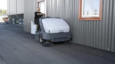 Is uiterst productief dankzij een grote hoofdborstel van 900 mm en een werkbreedte van 1600 mm. Daarnaast zorgt de vuilcontainer van 315 liter voor een extra lange werkduur.